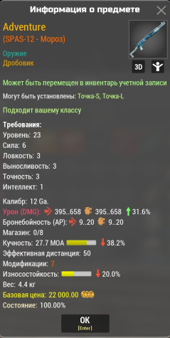 Сервер: Europe-2Краткое описание: (spas)Спас12 M7 мороз (395-658)31.6.% урон -38.2 точность -20 износ (все сервера)