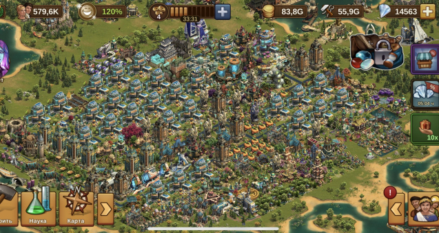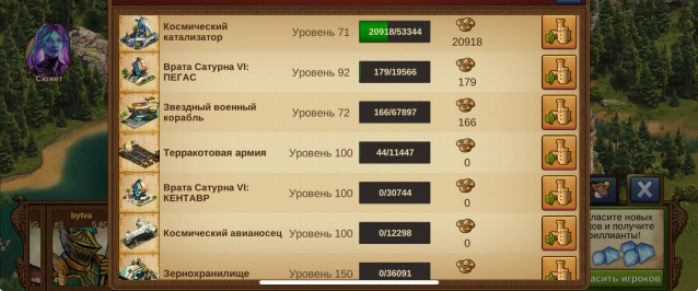 Также большое количество ивентовых построек, огромный склад с разными зданиями и усилителями (можно заставить экосферами и октосферами так, что суточный сбор будет до 60 тыс СО (но снизится атака/защита))