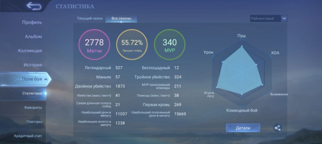 Процент побед: 55