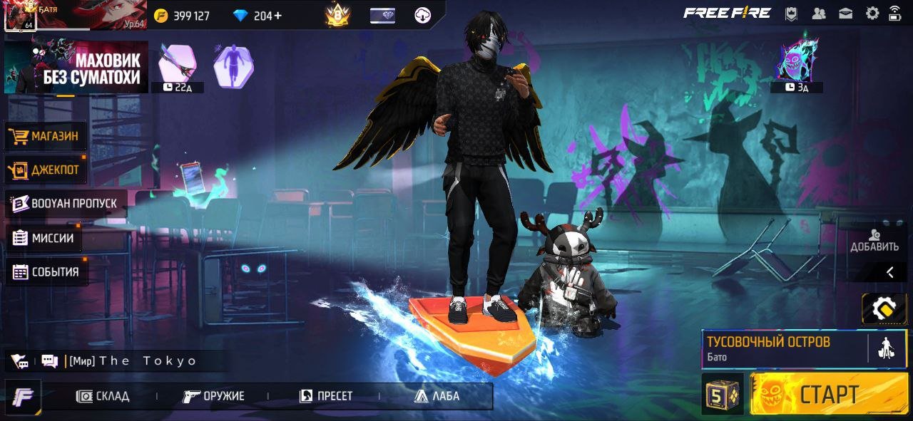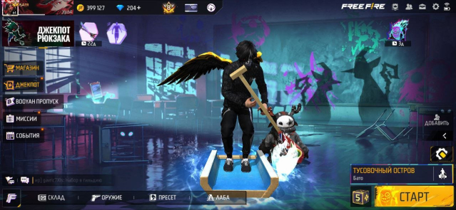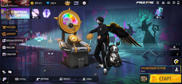 🎒 Инвентарь: 90 рюкзаков, 84 доски, 60 парашютов, 84 лутбокса, 9 музыкальных кассет.