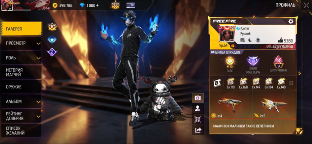 Подробное описание: Продаю топовый аккаунт Free Fire — 64 lvl, 8 праймов, 17 эволюций (3 фулл). В инвентаре: 368 скинов на оружие, стенки и гранаты, 159 наборов, 80 эмоций, 9 появлений в лобби, превращения — Наруто и Полночный Лучший.