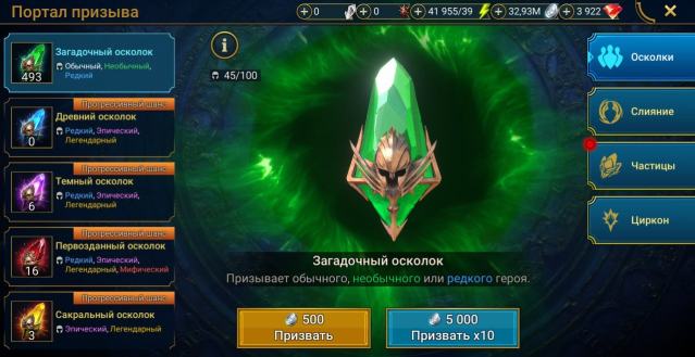 • ОСКОЛКИ: 🟢493 🟣6 🔴16 🟡3