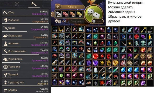 Шайка в ремесле (скрин)+костюм кулинара. 238к монет ворон.Есть 2 огорода по 10 ячеек.