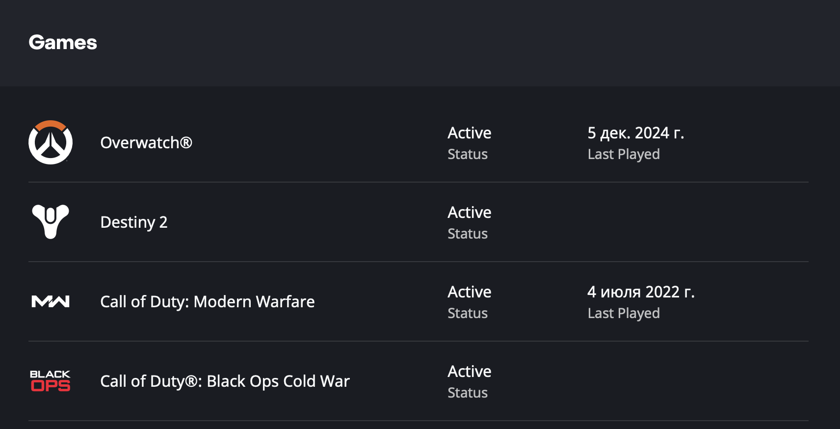 • На аккаунте будет Call of Duty Cold War, Call of Duty Modern Warfare (2019), Overwatch, Destiny 2 (куплена + Expansion Pass в 2017).