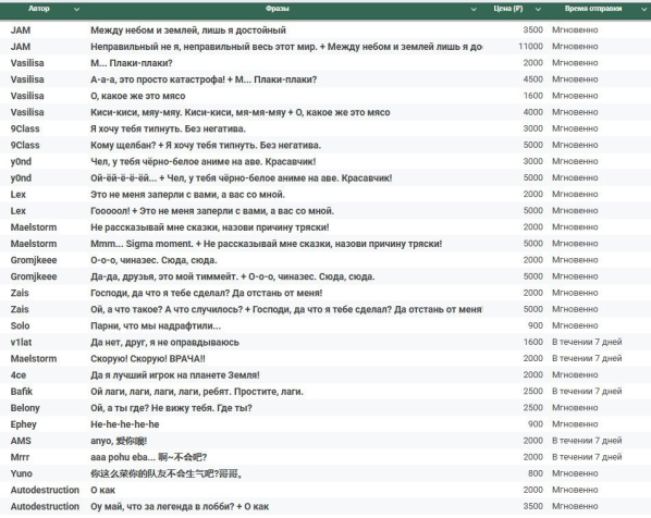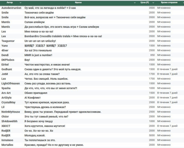 ⚪Каталог всех фраз в наличии: koval3k.trade и в скриншотах к лоту