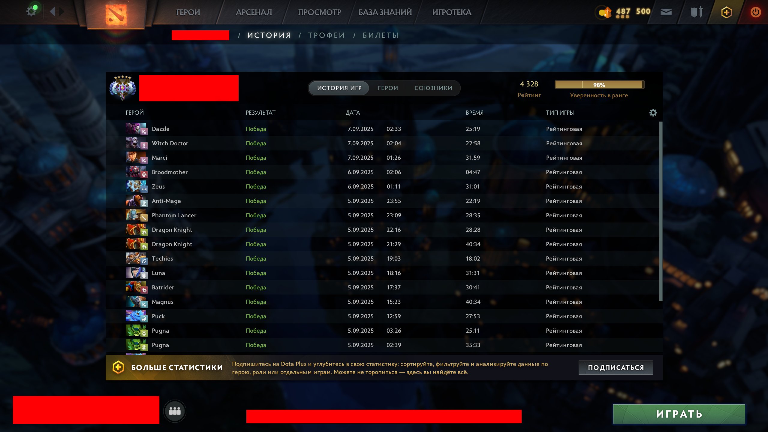 ✨ 12.400 MMR — Моя наивысшая отметка рейтинга, на тот момент 500 ранг Европы.