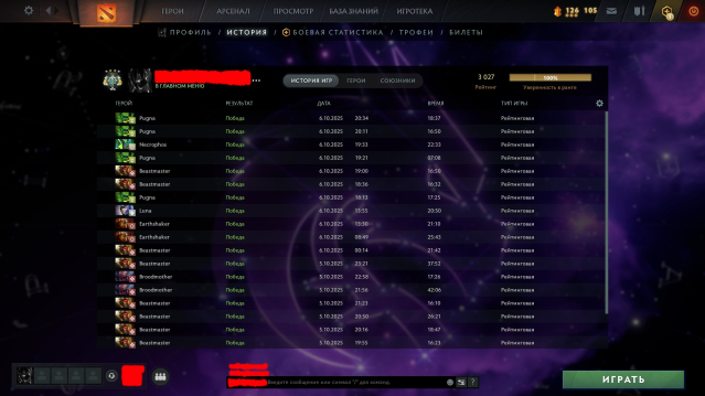 🏆 Мой максимальный MMR 〰 14,300. Пиковый ранг 〰 200 Европейского лидерборда