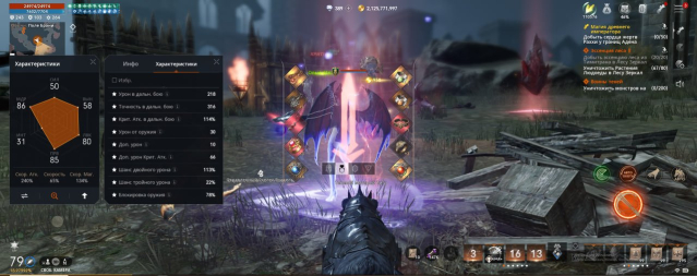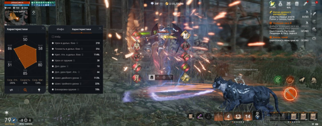 ℹ️ Другие Характеристики: Крит. Атк. 114%, Шанс Двойного Урона 113%, Шанс Тройного Урона 22%, Блокировка Оружия 78%, Увеличение Урона от Оружия 180%, Увеличение Урона от Умений 168%, Сопротивление Оглушению 47%, Шанс оглушения 59%