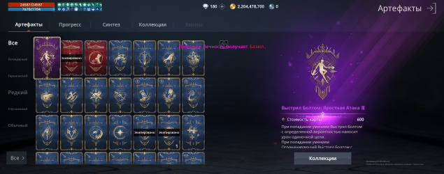 📜 Артефакты: 1 шт. Фиолетовый (в класс) Выстрел Болтом