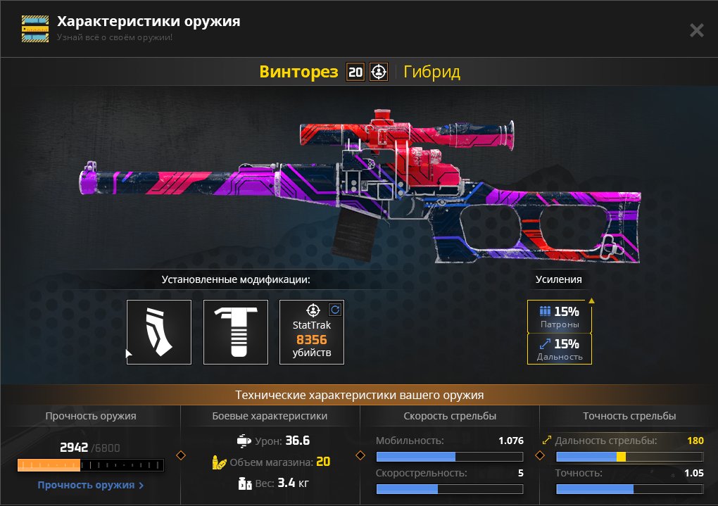 Подробное описание: 2 баффа ( 2 дальность 2 патроны )