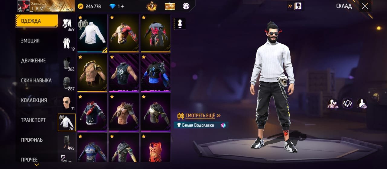 В акке есть много всего 7 прайм, 6 эволюций и 1 фулл, есть сет инкубаторов, белая водолазка, штаны ангела, много сетов из Наруто: Мадара, Итачи, Минато, Саске, Наруто, Орочимару и Джирайя! 107 эмоции, 4 эмоция появления и тд я сам лично очень много донатил пока что на акке есть ещë Ваучер на месяц!