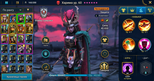 Легендарных героев: 21Уровень аккаунта: 44
