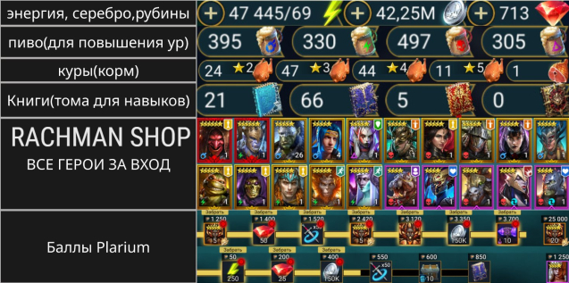 Краткое описание: ‼️СТАРТ‼️🔴Комидус +🔴Гарол +🟡Лилиту +🟡Ниндзя + 🟡Леги за вход + Осколки[🟡4🟣31🔵296 ]