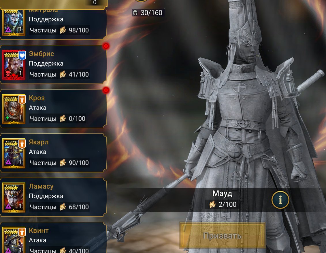 Подробное описание: Хороший мид гейм аккаунт, все подземки фармятся, включая 25 песок. Хард башня закрывается и фармится, Гидра и Химера бьются на предпоследних уровнях сложности на ключи легко, сильный потенциал под гидру из за наличия Тита (осталось достать виксвела и гидра закрыта навсегда).Вф закрыт на половину (надо прокачивать эпиков). Город в процессе освоения. На аккаунте покупались 2 топовых батлпасса (Истребление и интуиция), шмот на аккаунте не плохой. 15 осколков до гаранта на мифика.