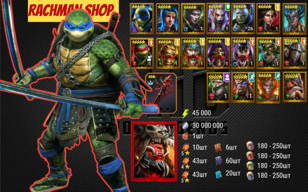 1. 1. Начни играть с нуля топовой связкой героев (Сапп + ДД)🔴Ашнар +🟡Леонардо и РАфаэль (ЛИМИТКи) + Ниндзей + ещё 16 лег.