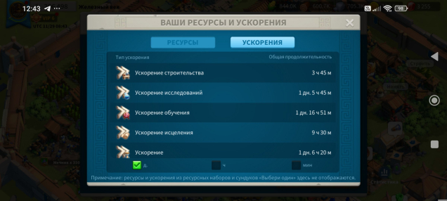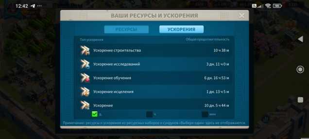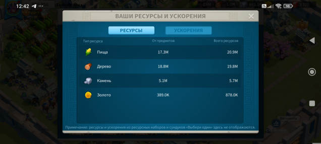Ресурсы и ускоры (скриншот)