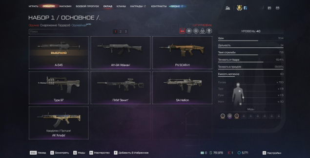 ⭐ А-545 40 lvl (3 мода), Type 97 27lvl (1 мод), АН-94 Абакан 1 lvl, FN SCAR-H 1 lvl