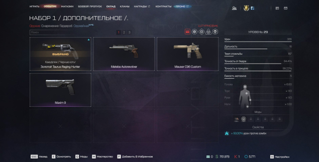 ⭐ Золотой Taurus Raging Hunter 29 lvl, Mateba Autorevolver 36 lvl (1 мод)