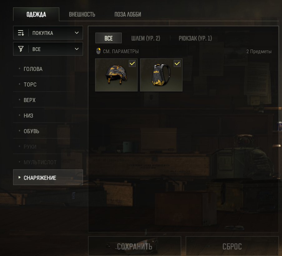 Скины на оружия: 5шт, Скин на рюкзак и шлем..8 вещей