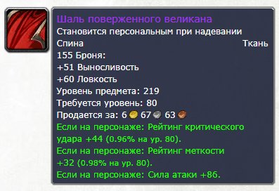 🧣 Шаль поверженного великана (дд, 219 илвл)