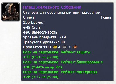 Подробное описание: 🧣 Плащ Железного Собрания (танк, 219 илвл)