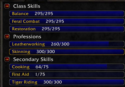 Куплен маунт, выучены все скиллы на кота и частично на медведя, максимально прокачены все лечилки