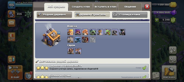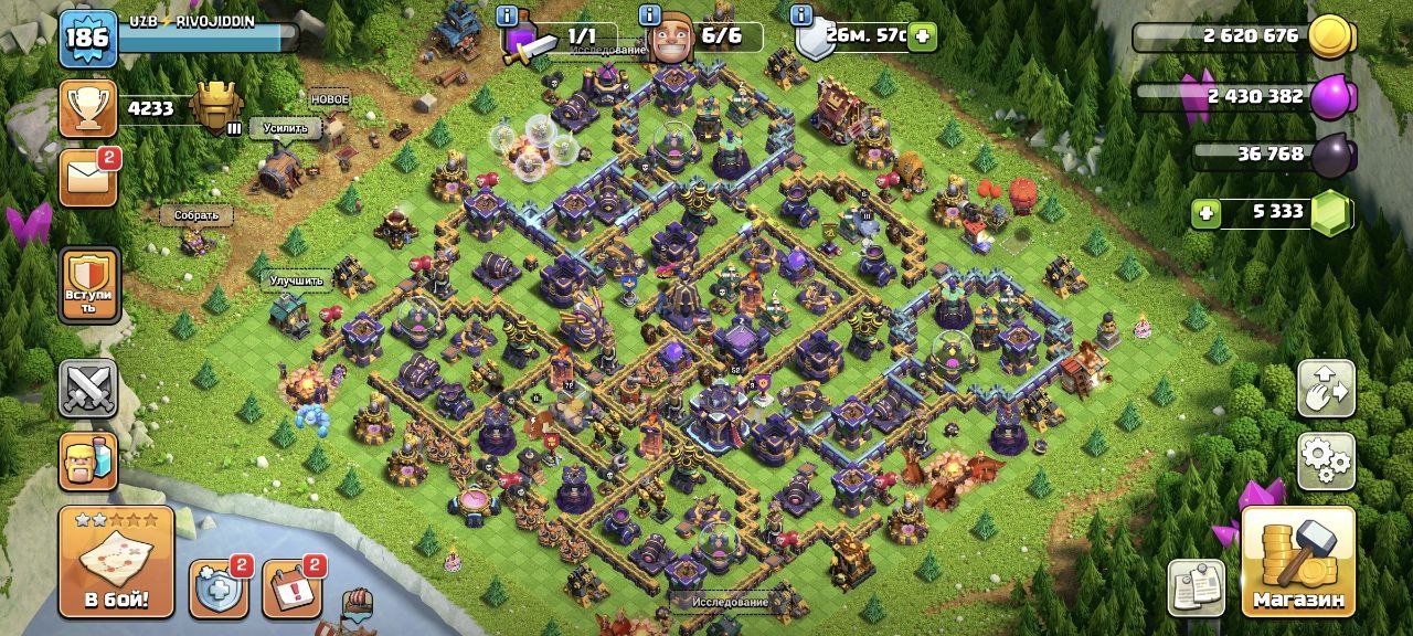 Уровень Ратуши: 15Краткое описание: 🟨🔥🔥【 TH 15 FULL 90%】⚡ 186 LVL ⚡💎8 ЭПИК СНАРЯГ + 5К ГЕМ💎【ГЕРОИ — 72/81/52/32】⚡ С ПОЧТОЙ ⚡ СКРИНЫ 🟨🔥🔥