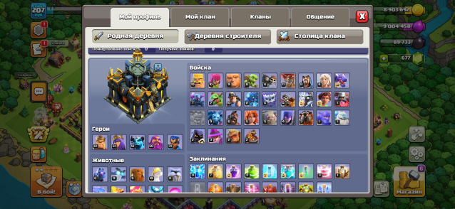 Уровень Ратуши: 17Краткое описание: V💎207LVL💎17TХ💎ГЕРОИ 61|61|51|50/31💎700 ГЕМОВ 💎СКРИНЫ💎