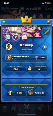 🀄️Быстрая ВЫДАЧА🀄️🏆5015🏆🟡213к ЗОЛОТА🟡❤️‍🔥АККУ 2 ГОДА❤️‍🔥‼️ПОДРОБНЕЕ В ОПИСАНИИ‼️С ПОЧТОЙ👑, 15 арена, 27 уровень, 5015 кубков, 87 карт, Нет