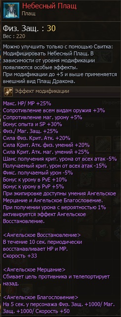 Продаю Небесный Плащ в игре Lineage 2 legacy на сервере Valakas.
