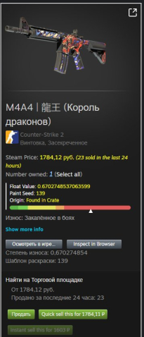 Краткое описание: M4A4 | 龍王 (Король драконов)