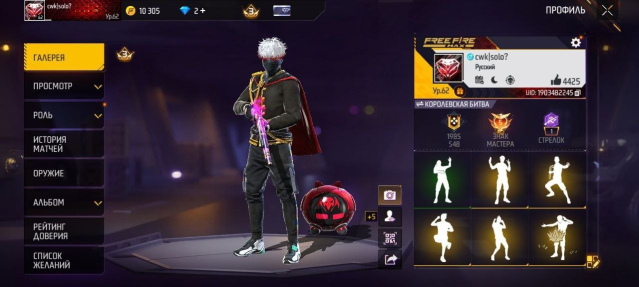 Основной список скинов, вещей, эмоций а также статистики аккаунта вы можете посмотреть на фото, и такжепосмотреть на профиль в самой игре 🌟