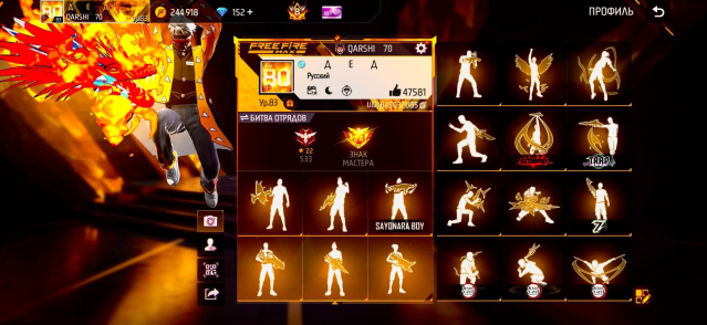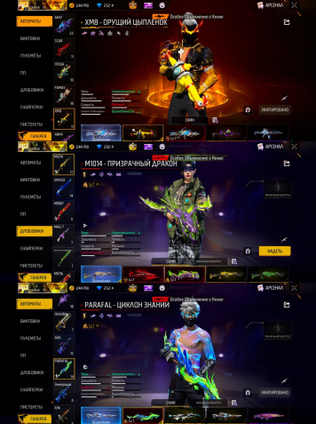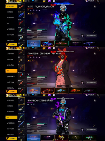 ✅️ много женских костюмов ✅️ Уникальные события ✅️ ЗОЛОТОЙ САМУРАЙ 🏆✅️ ИНКУБАТОР Огненный Солдат ФУЛЛ ☄️✅️ Заяц отчаяние 👺✅️ Красная тень 🦸🏽♂️🔫 АРСЕНАЛ АККАУНТА:🔥760+ скинов на оружие ✅🔥 Всё фулл 🔥 Все инкубатори AK-47,AN94,PARAFAL,AC80,UMPMP5,MP40,P90,THOMSON,BIZON,VECTOR,M1014,AWM.🔥 ОЛД СКИНЫ: ИСКУССТВО ВОЙНЫ Ump,AWM-MONARK,M1887-ONEPUNCHMAN,AK47-ГНЕВ ЕДИНАРОКА ,AUG-CR7🔥 Скорострельность +2 на всех Пушках ☠️💥 Эволюционное оружие:✅ M1014, Scar, AK-47, MP40 XM8 Ump, M1014 Scarpion, An94, M4A4, MP5, Thomson, Ястреб, Гроза, Мп40 Кристалл 🧊 и Парафал – FULL эво