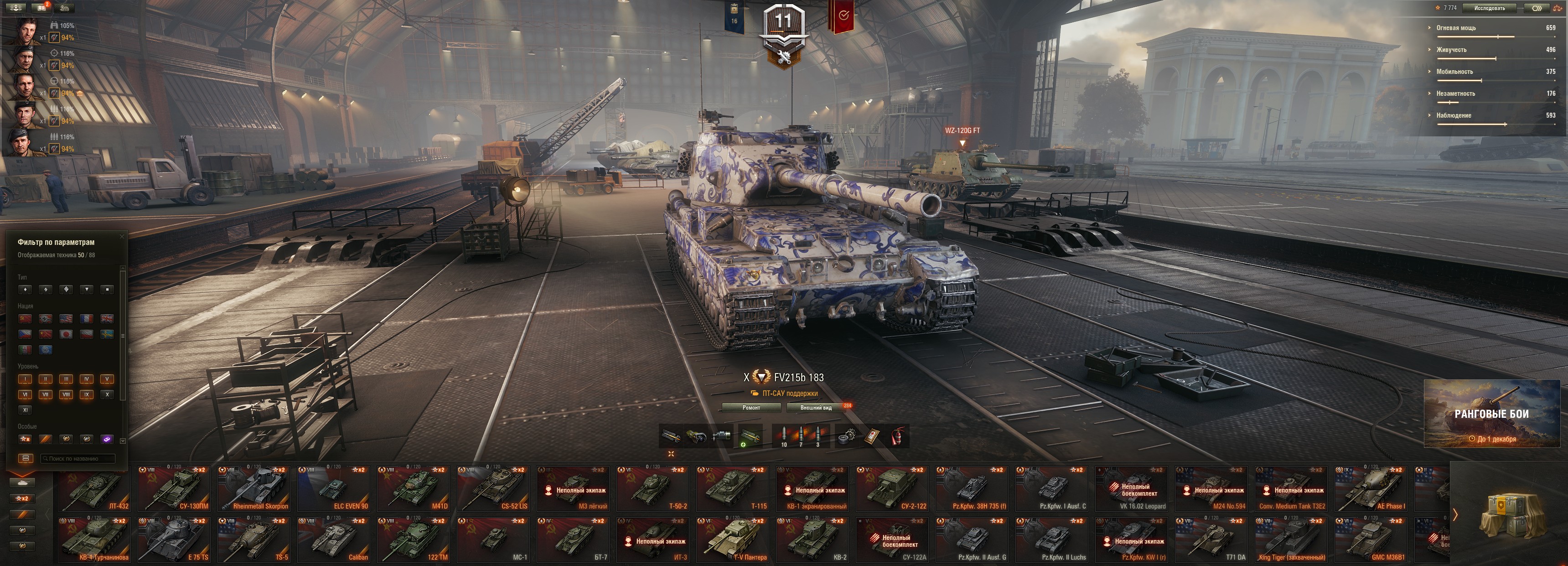 ⚡10ур - 37шт⚡Премы - 56шт⚡Lion, FV215b 183⚡