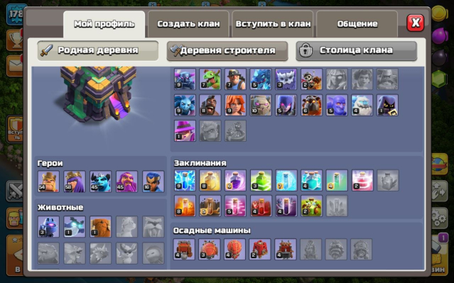 Уровень Ратуши: 14Краткое описание: 14 тх с прокачкой фулл 13, 54/58/45/45/18, 1 к гемов, вкачано снаряжение, 176 лвк, описание 👇
