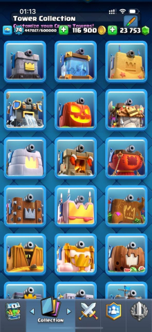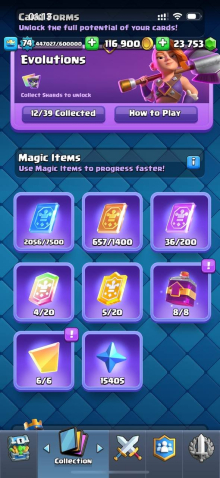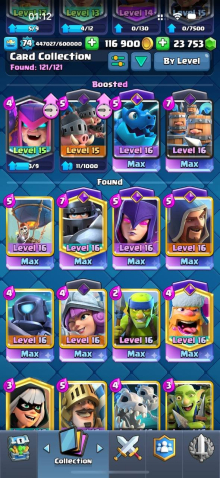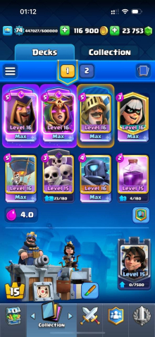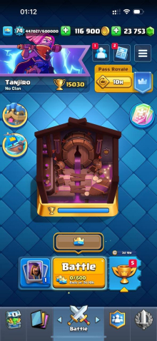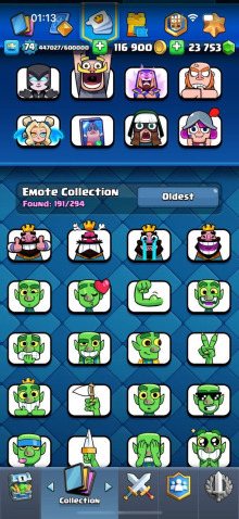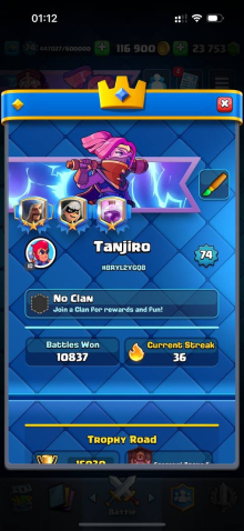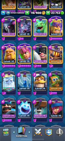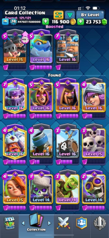Краткое описание: 15 к 🏆, 74 лвл, колода с шаром, 21 16 лвл, 23 к гемов, 11 эволюций, 191 эмодзи, описание👇