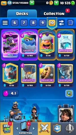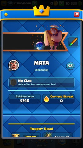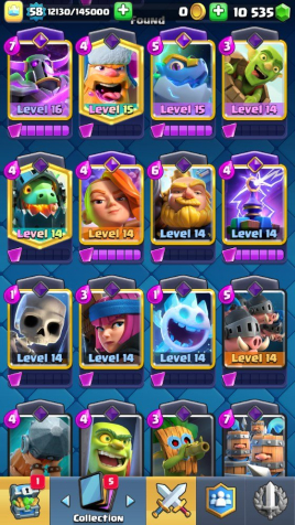 Краткое описание: 10 к 🏆, 58 лвл, колода с пеккой, 1 16 лвл + 6 15 лвл, 10 к гемов, 8 эволюций, 51 эмодзи, описание👇