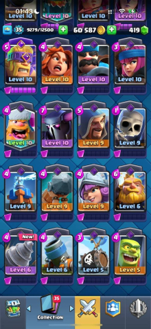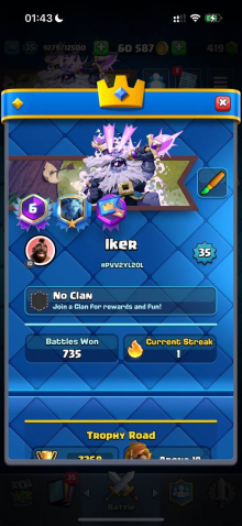 Краткое описание: 7.2 к 🏆, 35 лвл, колода с дудцом, 2 эволюции, 15 эмодзи, описание👇