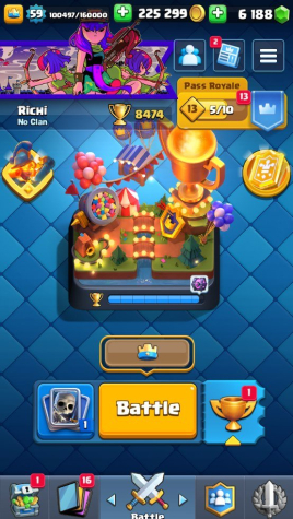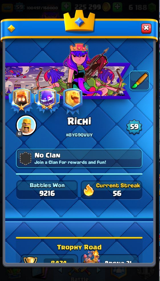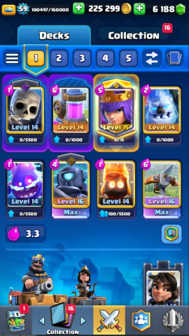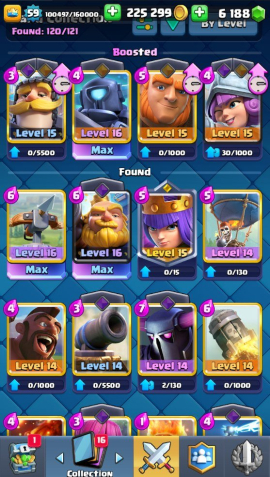 Краткое описание: 8.4 к 🏆, 59 лвл, колода с арбалетом, 3 16 лвл + 49 14 лвл, 6 к гемов, 64 эмодзи, описание👇