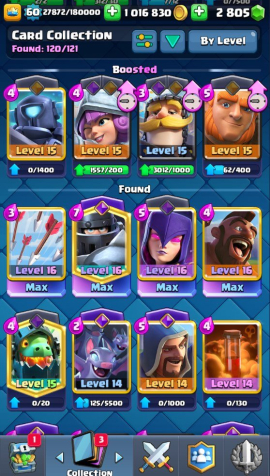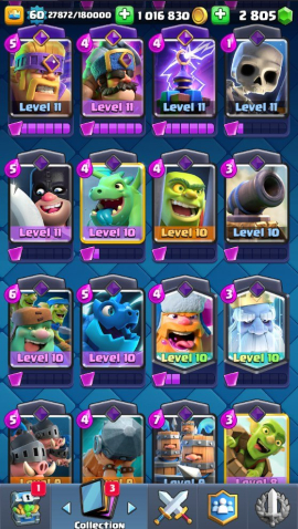 Краткое описание: 9.6 к 🏆, 60 лвл, колода с хогом, 4 16 лвл + 3 15 лвл, 9 эволюций, 67 эмодзи, описание👇