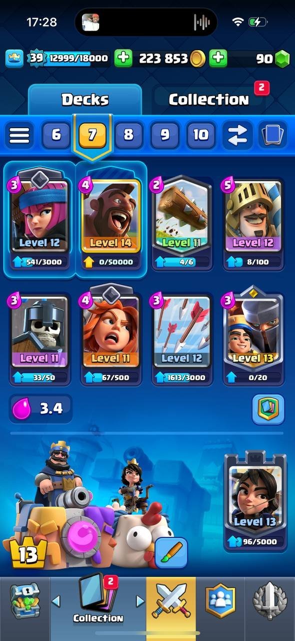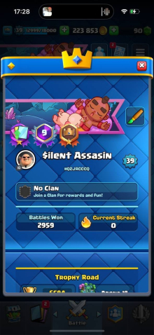 Краткое описание: ⚔️CR АРЕНА 18🥑6.5К КУБКОВ🥑39 LVL💠90 ГЕМОВ💰223К МОНЕТ🌟2 ЭВОЛЮЦИИ🔮109 КАРТ🐉19 ЛЕГЕНДАРОК🔐