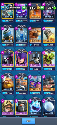 ⚡️Эволюции: 8 шт (Мегарыцарь, колдун, валькирия, гоблин с дротиками, тесла, бомбер, варвары, электродракон)