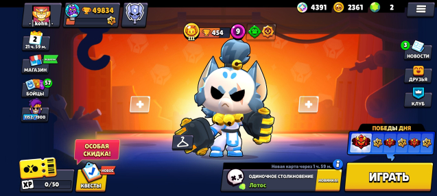 В Бравл Старсе 49800 кубков/95 бойцов и уйму классных и дорогих скинов
