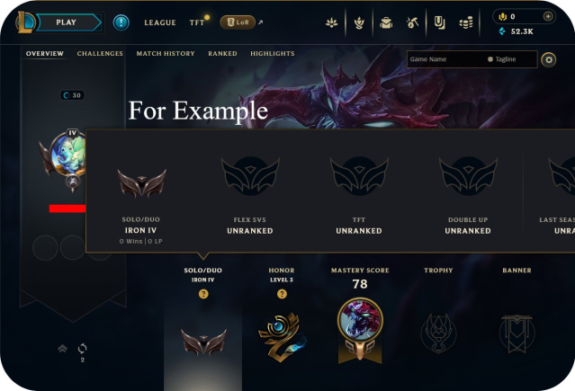 [📌] Rank: IRON IV 0 LP (Placements Completed)