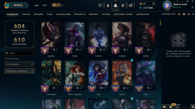 Краткое описание: 💎Быстрая ВЫДАЧА💎150 Скинов💠171 Чемпионов💠113 624 СЭ💠Фарфоровая Люкс (престижный)💠 Элементалист Люкс💠
