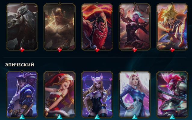 Элементалист Люкс ✨ Победоносная Фиора ✨ Победоносная Анивия ✨ Победоносный Твистед Фэйт ✨ Возрожденная Ривен Чемпионата мира 2012 ✨ SSG Шая ✨ SSG Талия ✨ SKT T1 Синдра ✨ SKT T1 Зед ✨ iG Фиора ✨ PTX Вейн ✨ Фарфоровая Люкс (престижный) ✨ Кейтлин из Аркейна ✨ Джинкс из Одиссеи ✨ Амбициозный эльф Джинкс ✨ Самира из Пси-отряда ✨ Мини-босс Бел'Вет ✨ Звездная защитница Ари ✨ Звездная защитница Поппи ✨ Дух цветения Дариус ✨ Дух цветения Кейл ✨ Дух цветения Мастер Йи ✨ Дух цветения Кассиопея ✨ Камилла из Арканы ✨ Мордекайзер Темная Звезда ✨ Служитель смерти Виктор ✨ Механический вестник Виктор ✨ Разрушители Нуну и Виллумп ✨ Бумажные Нуну и Виллумп ✨ Нуну и Пчелумп ✨ Йорик, басист Pentakill ✨ Мордекайзер, гитарист Pentakill ✨ Старый бог Мордекайзер ✨ Создатель Виктор ✨ Ультрабоевой зайчик Ривен ✨ Прощенная Ривен ✨ Лунный зверь Фиора ✨ iБлицкранк ✨ Копье совершенства Блицкранк ✨ Тюнингованный Пилтовером Блицкранк ✨ Тусовая Мисс Фортуна ✨ Мисс Фортуна из Преступного города ✨ EDG Виего ✨ Боевая душа Виего ✨