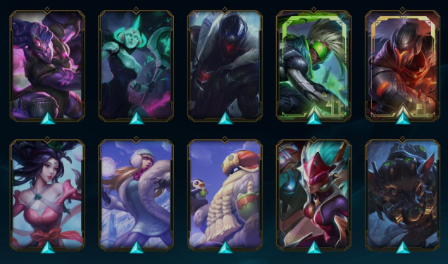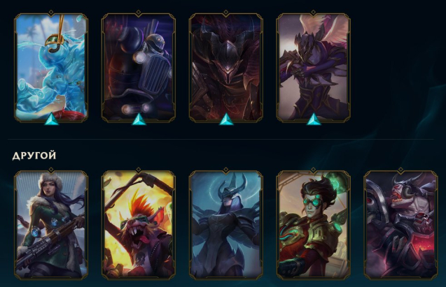 ✨ SKT T1 Джин ✨ ПРОЕКТ: Джин ✨ Звёздная защитница Джинкс ✨ Звёздная защитница Ари ✨ Звёздная защитница Люкс ✨ Riot Кейл ✨ Riot Тристана ✨ Riot K-9 Насус ✨ Средневековый Твич ✨ Твич из отряда «Омега» ✨ Тимо из отряда «Омега» ✨ Нефритовый дракон Вуконг ✨ Убийца драконов Пантеон ✨ Убийца драконов Браум ✨ Мордекайзер Pentakill ✨ Сона Pentakill ✨ Эзреаль Импульсный Огонь ✨ Лунная императрица Люкс ✨ Программа Сорака ✨ Варус Тёмная Звезда ✨ Супергалактическая Шивана ✨ Снежная Синдра ✨ Усиленный Синджед ✨