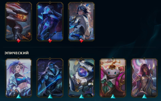 ✨ Акали из K/DA “ALL OUT” 💎 ПРОЕКТ: Джин / Ясуо / Джинкс / Фиора / Эш / Ренектон ⚙️ Люкс, похитительница магии 🌙 Звёздная защитница Релл 💫 Победоносная Сона / Анивия / Триндамир 💎 Король-бог Гарен 🌸 Королева Эш 💠 Дух цветения Вейн / Киндред / Ясуо 💫 Драконий оракул Удир 💎 Старый бог Иверн ⚙️ SKT T1 Ли Син / Джакс / Райз 💎 Мордекайзер из Pentakill “Lost Chapter” 💫 Кейл из Pentakill “Lost Chapter” 🌌 Диана Кровавая Луна 💎 Эвелинн Кровавая Луна 💫 Каин Снежная Луна 🌙 Космическая чародейка Лулу ⚙️ Хекстек Жанна / Синджед / Поппи💠 Riot Тристана / Кейл / Грейвз ✨ Инфернальный Галио 💫 Киберпоп Акшан 💎 Твистед Фэйт из Одиссеи 🌌 Космический паладин Сион 💫 Городской кошмар Дариус 💎 Тиран Свейн / Хрустальная роза Свейн 💎 Пиротехник Вейн 🌸 Ведьма Нидали 🌙 Король полиции Демасии Гарен 💫 Супергалактический Гнар 💎 Победоносная Анивия ⚙️ Темный рыцарь Насус 💎 Глубинная Нами ✨ и другие