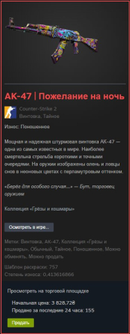 Краткое описание: 🔥🟢🟡🔴AK-47 | Пожелание на ночь(поношеное)🟢🟡🔴AK-47 Nightwish (Well-Worn)🟢🟡🔴Counter Strike 2🟢🟡🔴🔥