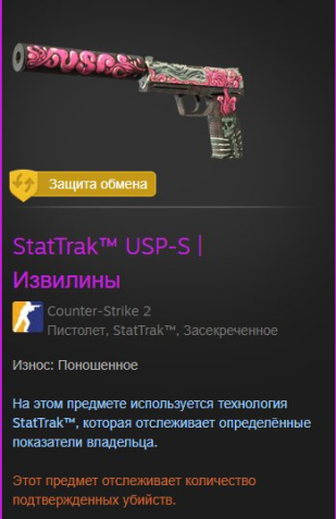 Краткое описание: StatTrak™ USP-S | Извилины / Передача Трейдом | Безопасно